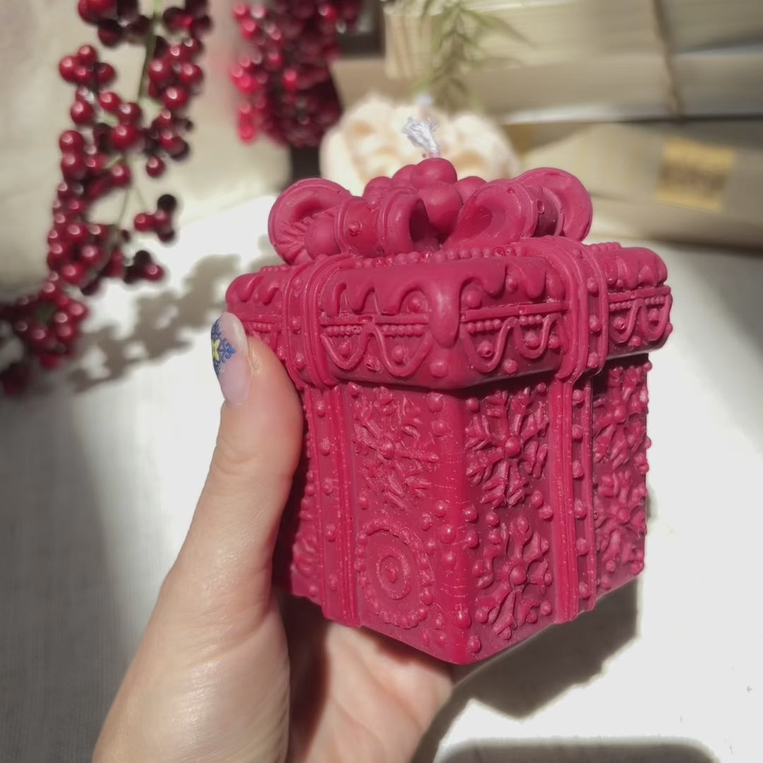 Celebrate the magic of the holidays with our GINGERBREAD GIFT BOX CANDLE — a festive treasure that looks just like a beautifully wrapped present. Handcrafted from 100% soy wax, this decorative candle is detailed with snowflakes, ribbons, and holiday patterns, making it the perfect accent for your Christmas table, mantel, or holiday gift exchange.